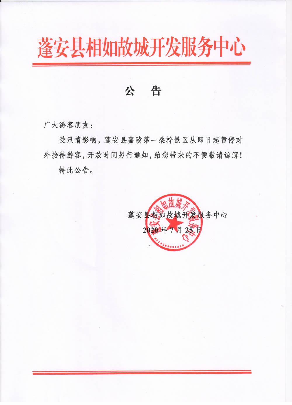 关于嘉陵第一桑梓景区暂时关闭的通知